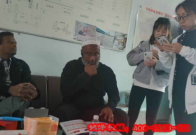 在客戶與現場技術人員的交流中,可以知道現在大型液壓機市場銷售在50萬左右,而一些小型的舔鹽壓塊液壓機供不應求,這是客戶老訪的目的是想訂購兩臺中型的氧化鋁壓塊液壓設備,隨后經過與我司技術人員的不斷溝通與試機實驗,使非洲客戶認識到我廠的技術實力和生產能力,同時也對我公司的高端智能設備感興趣,對產品質量表示贊許。最后在近當天下午四五點鐘的時候我們又與客戶對擬合作的項目進行了詳細的溝通,最終達成了初步的合作意向。